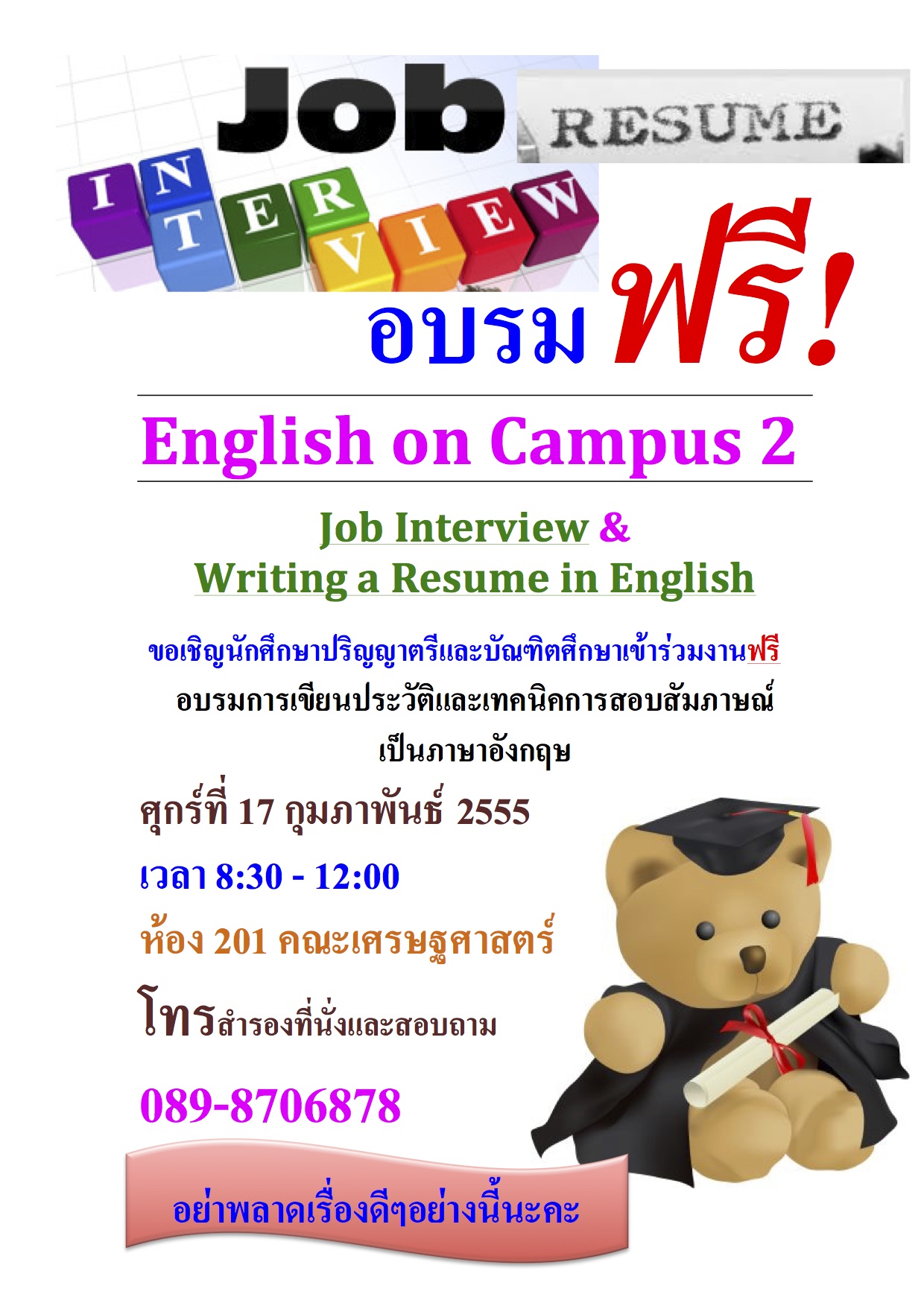 สถาบันเข็มทิศติวเตอร์ขอเชิญเข้าร่วมอบรมภาษาอังกฤษเพื่อเตรียมสอบสัมภาษณ์และเพื่อการเขียน resume ฟรี สำหรับนักศึกษาปริญญาตรี และนักศึกษามหาบัณฑิต
